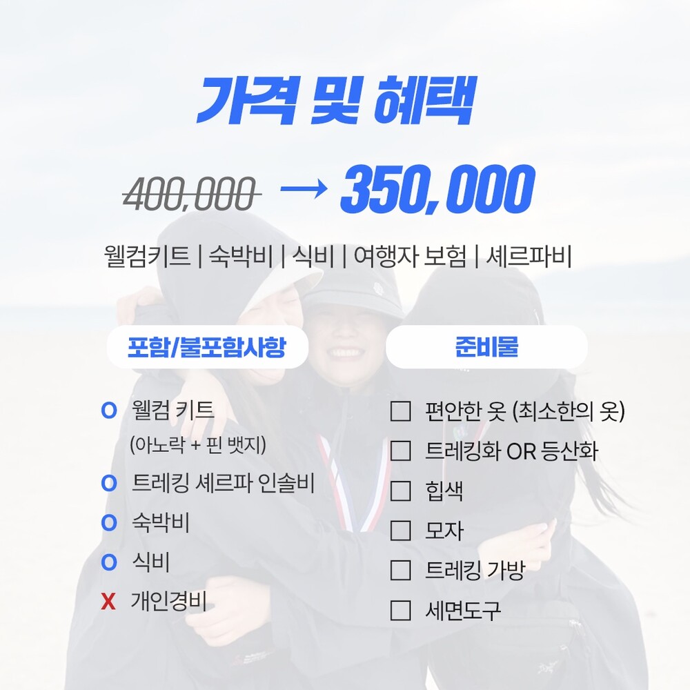 든든하게 서포트해주는 트레킹 전문가들과 함께 이런저런 이야기를 나누며 걸어줄 수 있는 동행자가 함께니까요.