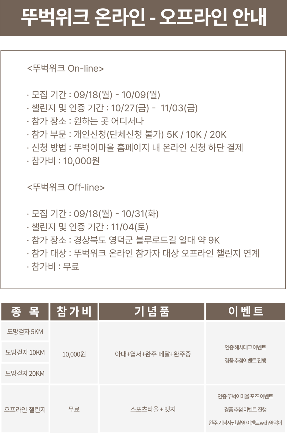 참가비 : 무료(뚜벅위크 온라인 챌린지 참가자 대상)
