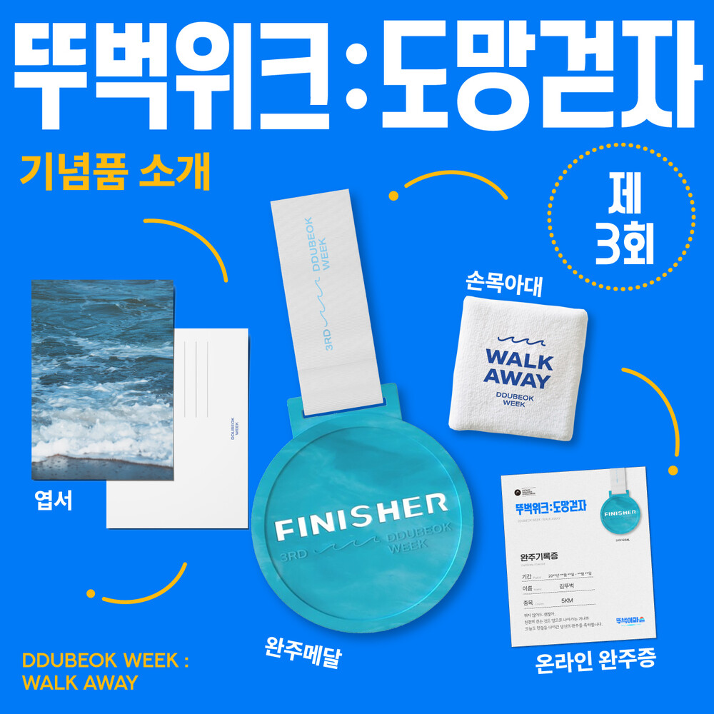 기념품 : 아대 + 엽서 + 완주메달 + 온라인 완주증